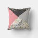Elegant geometric coral colour block gold confetti cushion