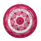 Elevate your games room with this intriguing dartboard. The board features an intricate geometric pattern in white on red, with curved lines creating a detailed line art design. The effect is like a crochet lace mat or a beautifully symmetrical abstract flower. Personalise with with your name(s) and the year for an individual finishing touch.