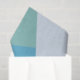 Modern geometric design featuring pastel blue, navy blue and sea green colour block.