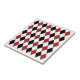 Graphic geometric pattern in black, burgundy röd and white for bathroom renovation.