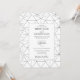 This design features an elegant black and white geometric pattern. The geometric pattern background creates the perfect backdrop for the wedding details. The combination of the black and white colours create a sophisticated, trendy and chic style. Elegant wedding invitation design with modern elements. The modern setup of the typography gives it a distinct style. Matching wedding stationery items and other wedding invite formats are also available.