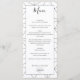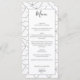 This design features an elegant black and white geometric pattern. The geometric pattern background creates the perfect backdrop for the wedding details. The combination of the black and white colours create a sophisticated, trendy and chic style. Elegant wedding menu card design with modern elements. The modern setup of the typography gives it a distinct style. Matching wedding invitations and other stationery items are also available.