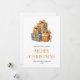 Watercolor Merry Christmas card featuring Christmas gift boxes. Easily personalise this elegant Christmas card with your family name and the year.