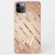 Elegant Girly Pink & Gold Glitter Pattern Monogram M iPhone 11Pro Max Case.