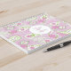 This cute paisley print notebook features floral elegant vintage pink paisley, name monogram initials, preppy trendy stylish paisley print, pink green blue flower pattern, girly girl feminine chic cute, school office home paper supplies, modern monogrammed back to school, retro trendy calligraphy script cute, simple minimalist minimal typography, artwork by laura lacina