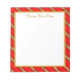 Add a personalised touch to a custom-made notepad. Elegant Glam Red Gold Glitter Stripes Personalised Notepad. Personalise with your own name initials, message, quote, or anything you desire. Or can be removed. Great gift idea.