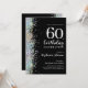 Elegant Glitter Black 60th Birthday Party Invitation. For a milestone birthday invitation with a touch of elegance, this design showcases a modern and sophisticated style with just the right amount of sparkle. The invitation features a background adorned with elegant glitter accents that catch the light beautifully. Modern typography highlights the celebrant's name and event details, creating a harmonious balance between contemporary design and timeless elegance. This invitation exudes a glamourous yet refined feel, perfect for celebrating a special milestone with grace and style.