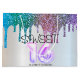 Adorable sweet 16 and rainbow drips on silver background. Any girl would love to have her name personalised on this stylish design.