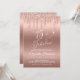 Elegant and chic 75th virtual birthday party invitation featuring "75 & Fabulous" in a stylish script against a rose gold background, with drips of rose gold faux glitter. You can easily add the online party details.