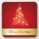Modern, elegant and festive Christmas illustration featuring a Christmas tree made of shiny stars on a red background with snowflakes and a golden border.