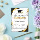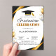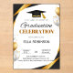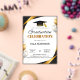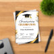 Make a grand statement with this sophisticated graduation celebration invitation. The design features a luxurious colour palette of metallic gold, deep black, and crisp white, framed by modern geometric accents. Decorative gold and white balloons with falling confetti add a festive yet high-end touch to the layout. Topped with a classic graduation cap and tassel icon, this template is perfect for formal high school or university commencement parties. It offers ample white space for clear, elegant typography, ensuring all your event details stand out with professional clarity.