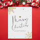 This beautiful Christmas postcard features an elegant black and white design, adorned with golden stars and sparkling snowflakes. The sleek calligraphy of "Merry Christmas" adds a modern yet sophisticated touch, perfect for sending warm holiday wishes. Whether you're celebrating with family or sending greetings from afar, this postcard is a stunning way to spread the joy of the season.