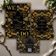Elegant gold and black design that exudes luxury and sophistication. A delicate pattern of golden floral vines frames the edge of the invitation, adding a touch of elegance.