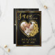 Announce your special day in style with this elegant gold and black heart-shaped photo Save the Date card. Featuring a romantic heart frame for your photo, sophisticated black background, and shimmering gold accents, this design is perfect for modern, glamourous, or formal weddings. Easily personalise with your names, wedding date, and details to create a stunning first impression.