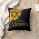 Elegant Gold and Black Merry Christmas Bow Holiday Throw Pillow