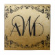 Three Initial Monograms Elegant Black and Gold Personalised Ceramic Tile