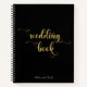 Elegant and simple black wedding notebook with gold script. Customisable.
