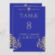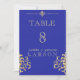 An elegant rich royal blue and gold damask wedding table numbers. This invitation is part of a set.