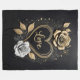 This stunning design features a sophisticated black background adorned with a golden heart, beautifully scripted with the word "Love" in elegant calligraphy. A luxurious golden rose blooms at the top, while a striking silver-white rose adds a unique contrast at the bottom, symbolizing harmony and everlasting devotion. The intricate swirling details and delicate heart accents create an enchanting romantic esthetic, perfect for Valentine's Day, anniversaries, weddings, and special occasions. Whether displayed on prints, apparel, or accessories, this exquisite artwork brings sophistication and charm to any setting.