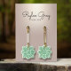 Elegant taupe and gold earring display card with elegant modern script and a dark charcoal back.