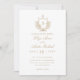 Elegant Gold and White Monogram Crest Wedding Invitation