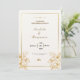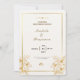 This sophisticated wedding invitation features a timeless design that combines classic elegance with modern style. The gold and white colour scheme is accented with intricate floral illustrations, creating a luxurious and romantic atmosphere. The invitation is bordered by a gold frame, adding a touch of opulence, while the two interlocking rings symbolise the union of two hearts. Perfect for a formal wedding ceremony, this invitation includes space for all the essential details: the names of the couple, the date, time, and location of the ceremony. Personalise this invitation with your own information to create a memorable announcement for your special day. Order now and let your guests know about your upcoming nuptials in style!