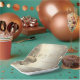 An elegant design with gold Christmas balls, and stars on a champagne background.