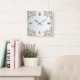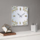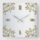 Elegant Gold Baroque Filigree Border On Silver Square Wall Clock