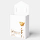 This design began with a simple idea—a shiny gold balloon shaped like a little teddy, floating into a celebration full of love. The clean white background and warm golden tones give these favor boxes a modern, elegant look that fits perfectly into a neutral baby shower theme.