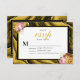 Elegant Gold Black Border Floral Wedding RSVP Card