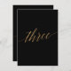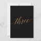 This elegant gold and black calligraphy table number three is perfect for a simple wedding. The neutral design features a minimalist card decorated with romantic and whimsical faux gold foil typography. The card prints on the front and back (double-sided). Other table numbers in the collection are sold separately.