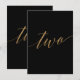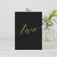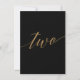 This elegant gold and black calligraphy table number two is perfect for a simple wedding. The neutral design features a minimalist card decorated with romantic and whimsical faux gold foil typography. The card prints on the front and back (double-sided). Other table numbers in the collection are sold separately.