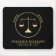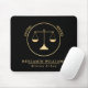 Modern, elegant Law Firm Logo mouse pad. Design featured gold scale of justice logo, name and title on a black background.