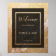 Classy glamourous luxury gold like, black and marble wedding poster with a fancy "welcome" script in modern contemporary style and with bride's and groom's names and wedding's date. Ideal for chic stylish modern wedding parties.