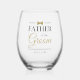 Elegant Gold & Black Modern Father of The Groom Stemless Wine Glass