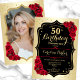 Elegant Gold Black Red Photo 50th Birthday Invitation