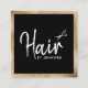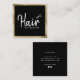 This modern hairstylist business card design features scissors, faux gold metallic texture & black background and elegant calligraphy font.
