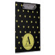 Elegant Gold & Black Star Pattern Monogram Clipboard