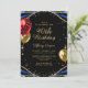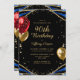 Elegant Gold Blue Agate 90th Birthday Invitation. Chic 90th birthday invite with gold glitter, blue agate marble swirls, red and gold glitter balloons and elegant calligraphy script lettering. Easy to personalise to celebrate turning 90 years old.