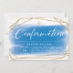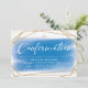 Modern, elegant boy Confirmation invitation features handwritten script ''Confirmation'' in white lettering , gold frame , gold cross on a blue watercolor background. Personalize with details in trendy capital lettering.