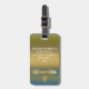 Luggage tag featuring an elegant gold, green and blue striped design with classy retro ornament.
