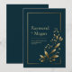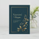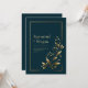Set a tone of understated luxury with this sophisticated design. The background is a deep, rich midnight blue, providing a dramatic canvas for a single, graceful golden botanical sprig that ascends from the corner. The leaves feature a fine, engraved texture, and delicate golden buds are scattered along the slender stems. A minimalist double gold border frames the entire composition, adding a final touch of modern elegance. The high-contrast metallic gold against the dark backdrop creates a chic and timeless aesthetic. This invitation is perfect for a formal evening wedding, a modern minimalist celebration, or any event where a touch of sophisticated glamour is desired.