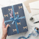 Make your gifts stand out with this elegant Christmas wrapping paper featuring watercolor gold bows on a rich dark blue background. Perfect for holiday presents, festive décor, and special celebrations.