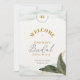 The card is beautifully personalised with a final countdown to the big day in a unique style on top. Below, a bold, elegant "WELCOME" greets your guests, followed by the bride-to-be's name, "Bridal Shower" in elegant typography, the date, and the venue or location. All of this is set against the stunning watercolor greenery and gold design of the collection.