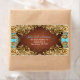 Elegant vintage floral swirls frame in beige and brown tones with touch of blue accent colour, address label template.