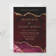 Elegant Burgundy Gold Agate Wedding Invitation. Chic burgundy black marble geode with gold glitter-like accents. Perfect for winter or holiday weddings.