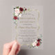Elegant card design featuring watercolour delicate burgundy pink blush flowers and green leaves, a faux gold frame, on transparent background. Use Personalise tool to add your info, change fonts, font's colours. For matching items, please, visit my Transparent Floral Birthday Collection.