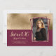 Modern geometric Sweet 16 birthday party invitation in faux gold and burgundy. Upload your favourite photo.