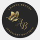 Elegant gold butterfly on black, monogramed classic round sticker
