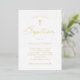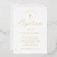 This simple and elegant design features classic gold foil calligraphy and modern text on a crisp white background. A matching gold foil cross makes this perfect for your religious Christian baptism celebration. It is a gender neutral style, so perfect for either a girl or a boy (or even twins!).